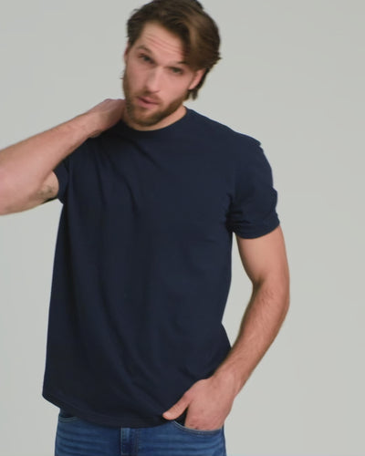 We may have cracked the code on the most versatile tee. Built with our classic bicep-hugging fit and a super soft cotton blend, this crewneck features a curved hem that feels equal parts elevated and casual. Plus, the tailored silhouette adds visual length to the torso—perfect for short kings who want to look taller, and tall kings who need a little extra coverage.