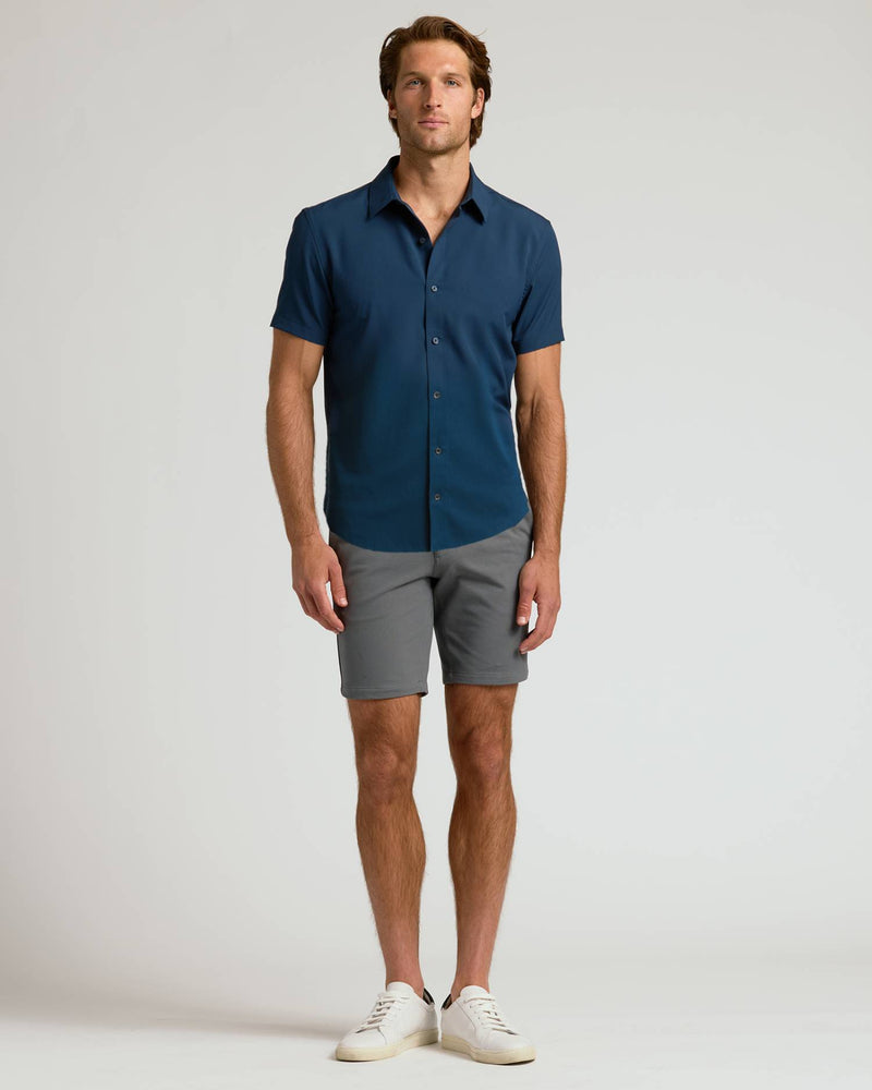 Assez ajusté pour le bureau. Assez confortable pour tous vos projets d'été. Le short chino classique 9 pouces allie tout le raffinement d'un chino à la facilité de votre short de tous les jours préféré. Le tissu extensible et respirant évacue l'humidité, résiste aux plis et conserve sa forme, tout en offrant une coupe légèrement plus longue, juste au-dessus du genou, pour une meilleure protection.